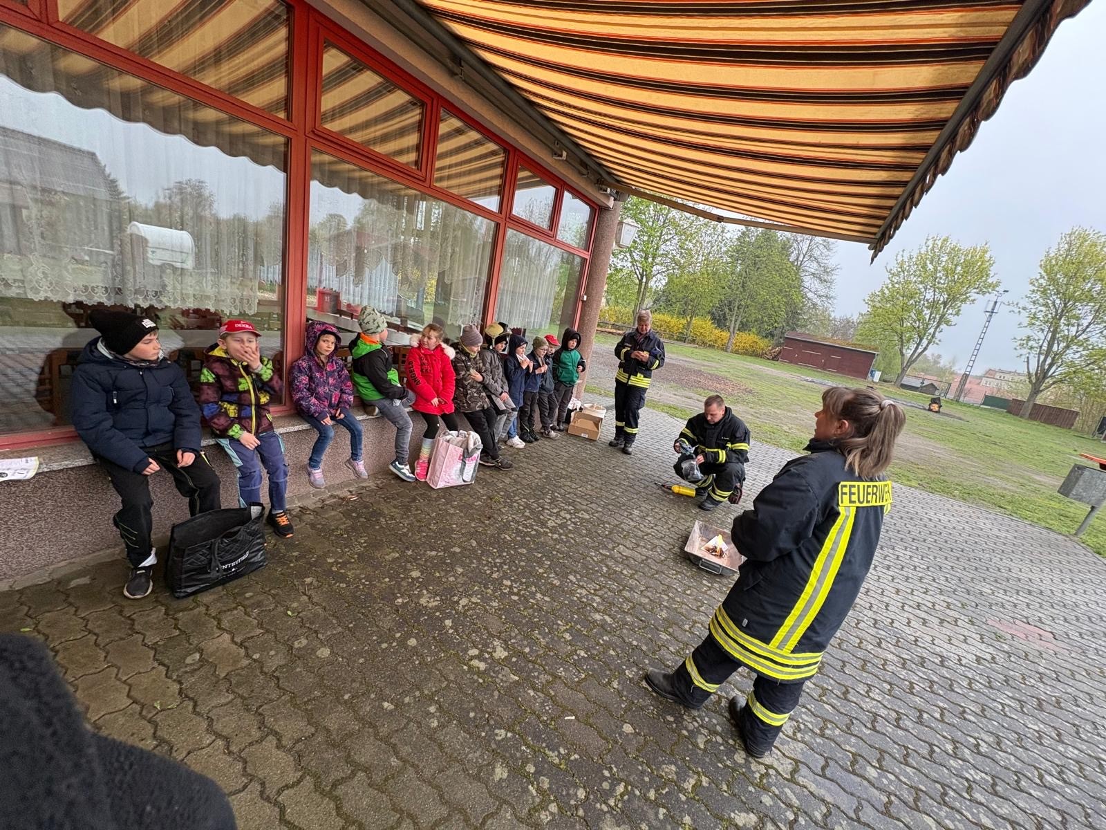 Am Montag den 20.04.2026 trafen sich die Feuerwehr-Kids Döbern, trotz des regnerischen und kühlen Wetters zu einer spannenden Ausbildung im Freien. Gut eingepackt ging es direkt los.
