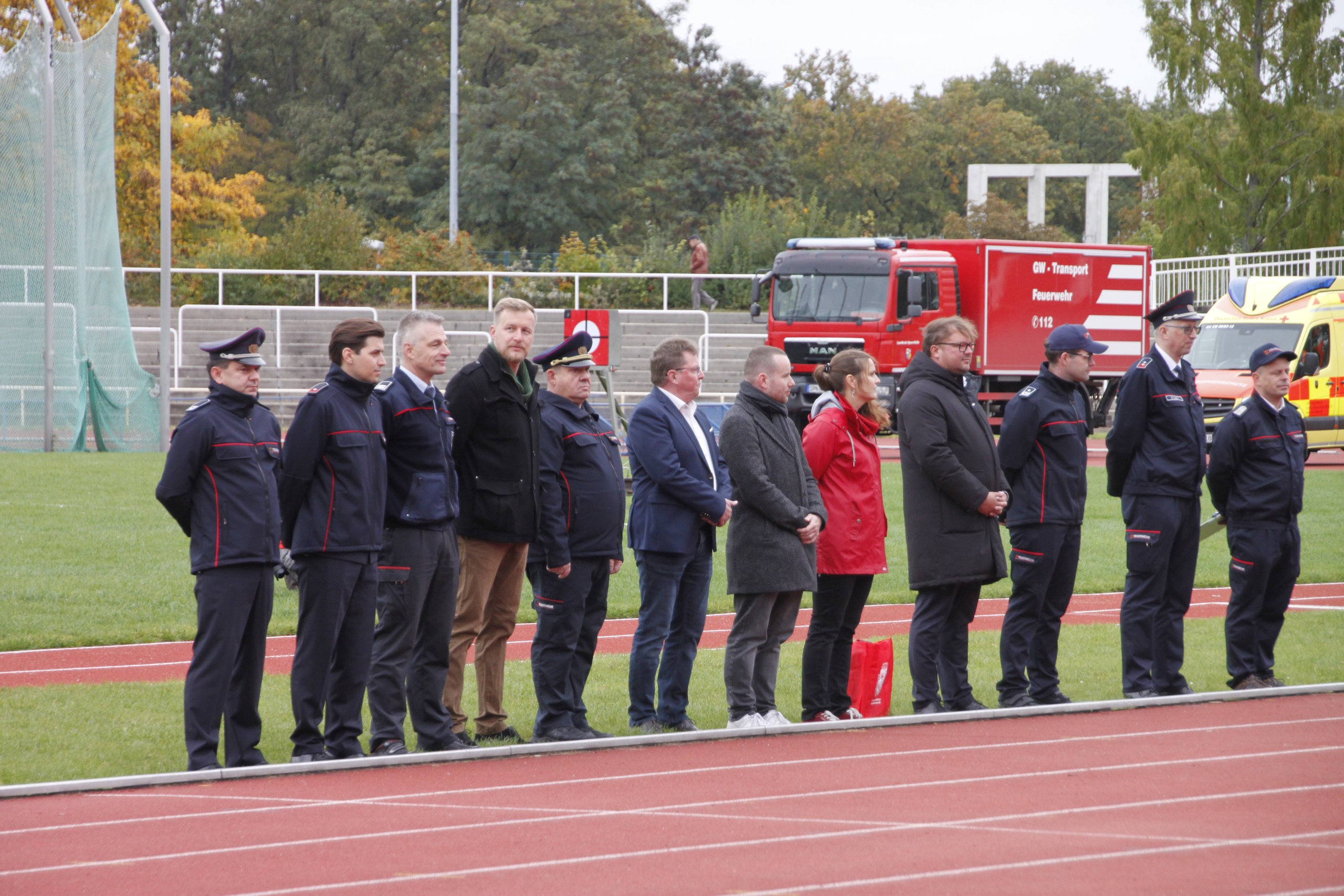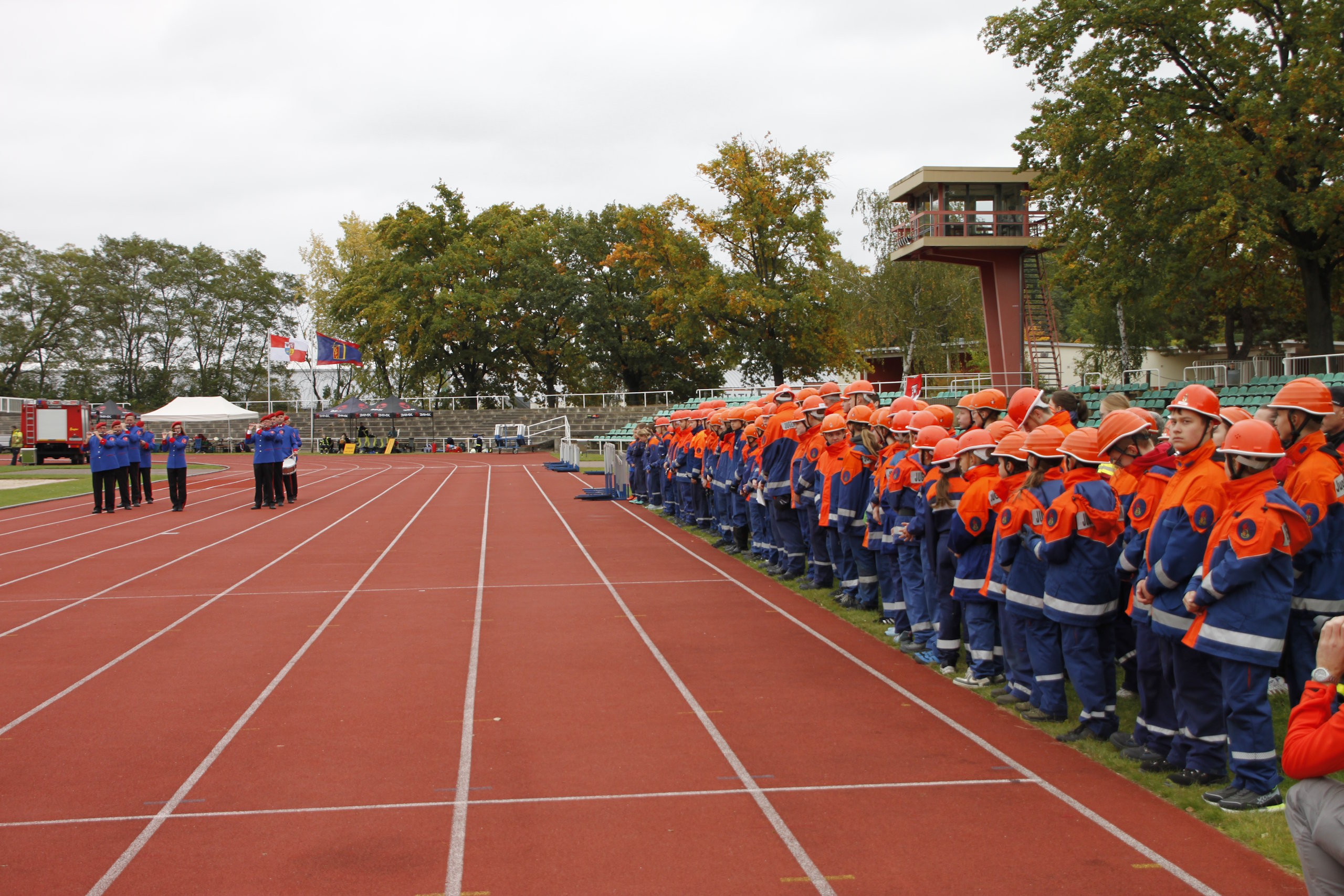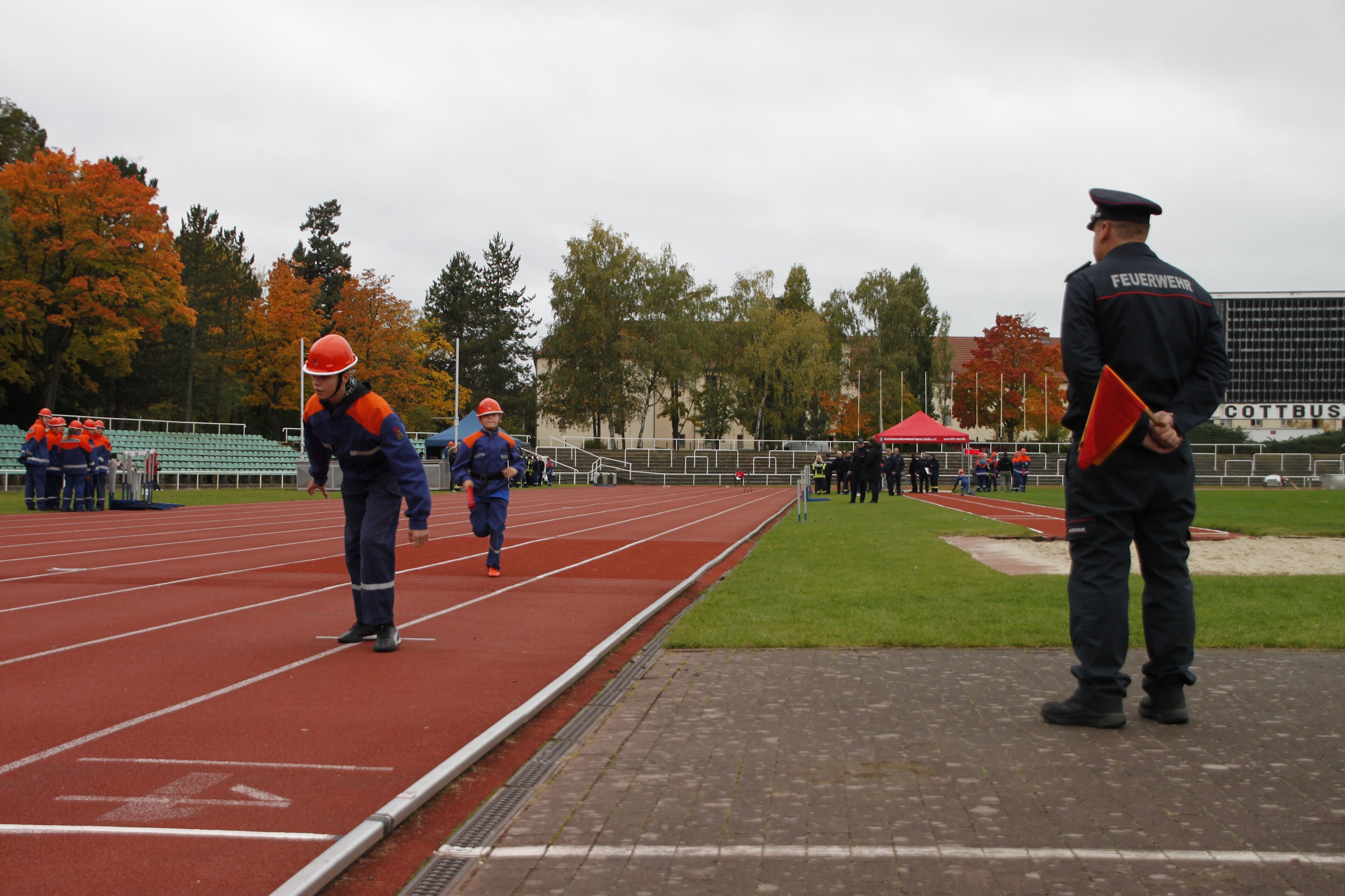 Bevor jedoch der Startschuss durch die Verantwortlichen erfolgte, wurde dieses Verbandsevent durch den Vorstandsvorsitzenden Kamerad Robert Buder eröffnet. Er konnte hierzu den Beigeordneten der Stadt Cottbus Robert Perko, die Bundestagsabgeordnete Maja Wallstein, den Landtagsabgeordneten Lars Katzmarek sowie den Geschäftsführer der Wirtschaftsregion Lausitz GmbH Heiko Jahn begrüßen. Ebenfalls vor Ort waren der Vizepräsident des Stadtfeuerwehrverbandes Cottbus e.V. Kamerad Kay Kruppa, der stellvertretende Stadtjugendfeuerwehrwart Kamerad Alexander Krause, der Leiter des Kreisverbindungskommando Cottbus Martin Heusler und Mathias Voigt als stellvertretender Kreisbrandmeister Spree-Neiße. In den Grußworten würdigten sie vor allem das Engagement der Jugendlichen, welches die Jugendlichen für die künftige Gefahrenabwehr in den örtlichen Feuerwehreinheiten zwingend beibehalten müssen. Zudem wünschten sie sportliche, faire und unfallfreie Wettkämpfe, verbunden mit der erfolgreichen Abnahme der Leistungsspange. Umrahmt wurde die Eröffnung traditionell durch den Spielmannzug Turnow e.V., welcher am 06.06.2026 sein 100-jähriges Jubiläum begeht.