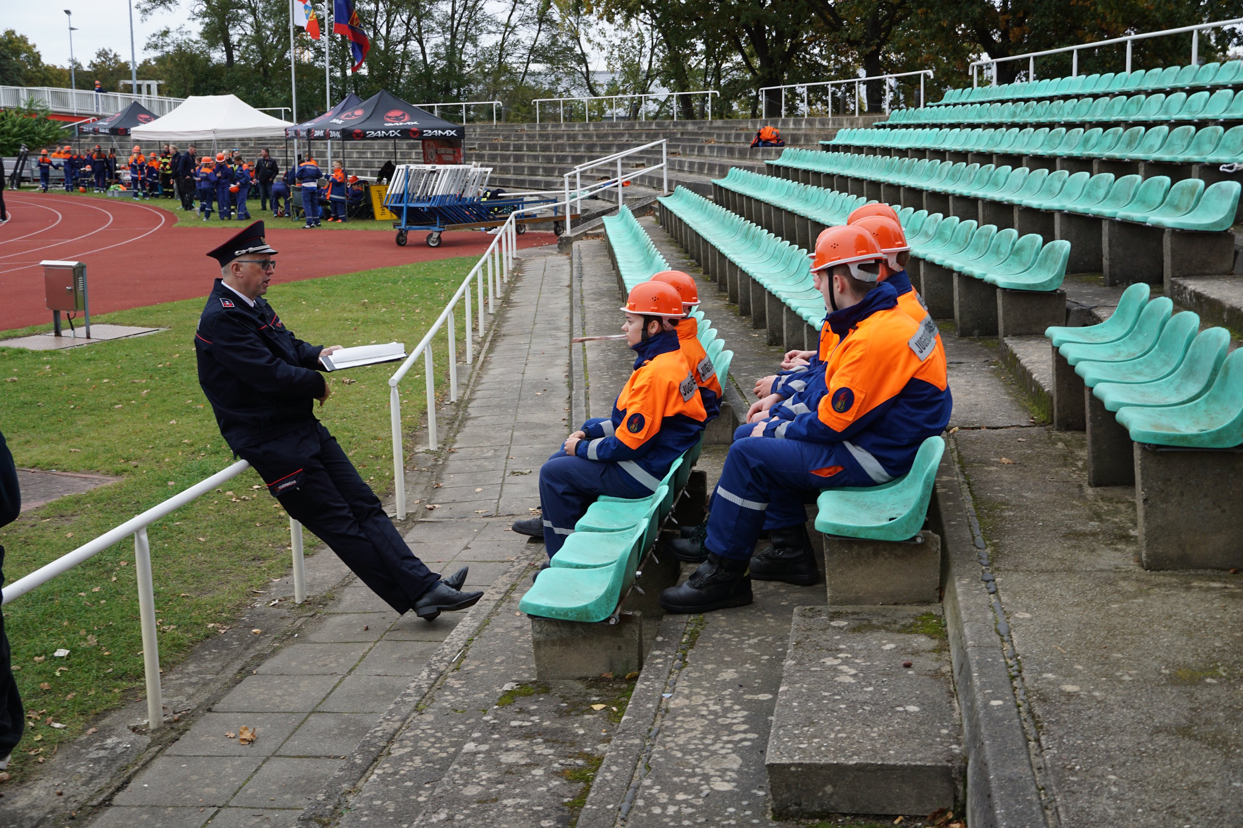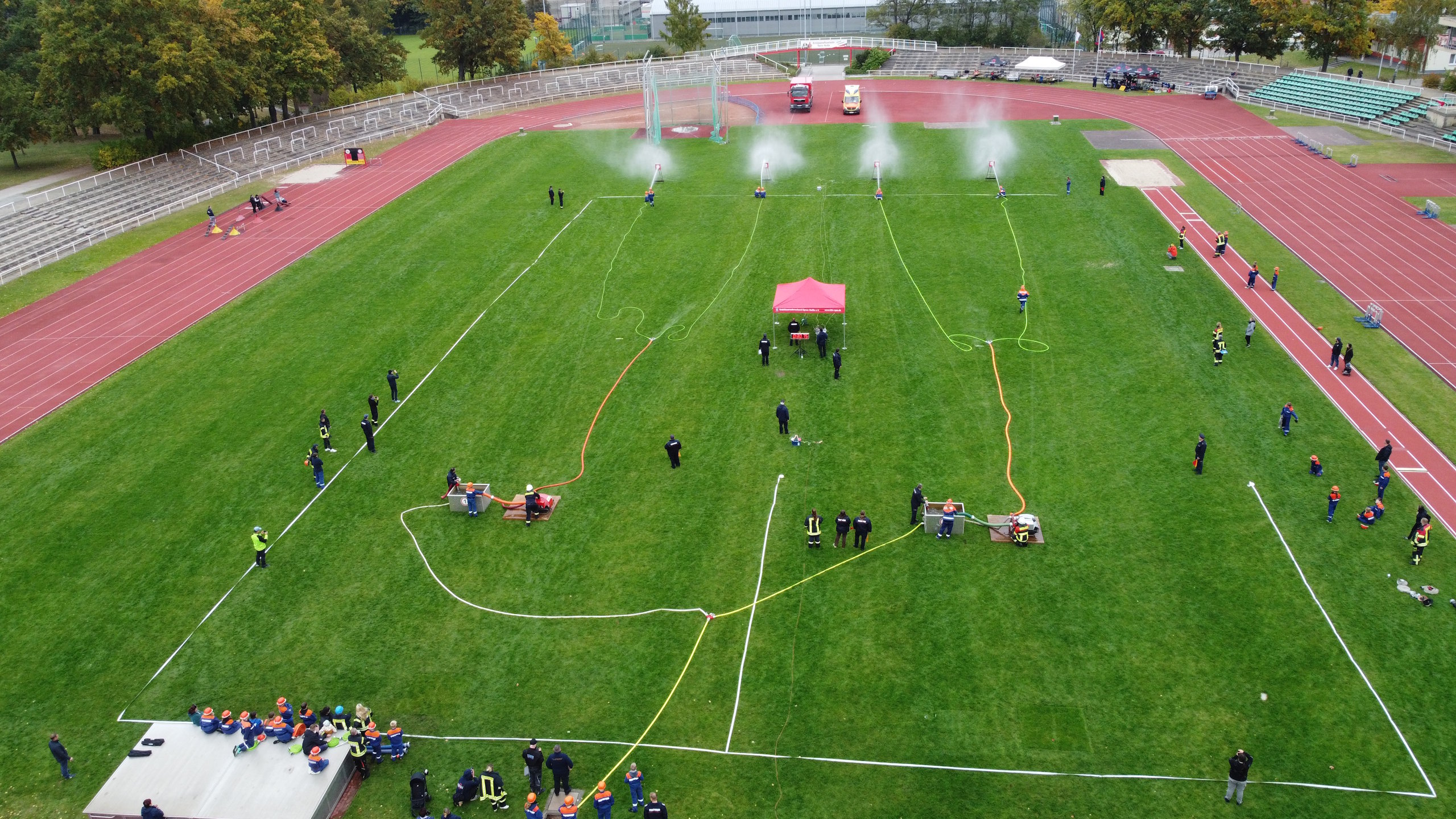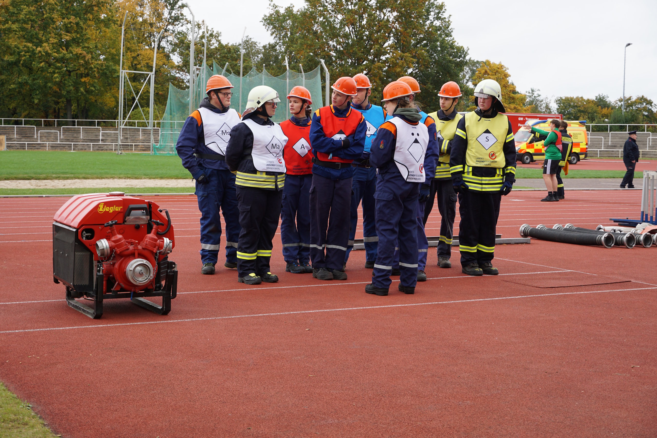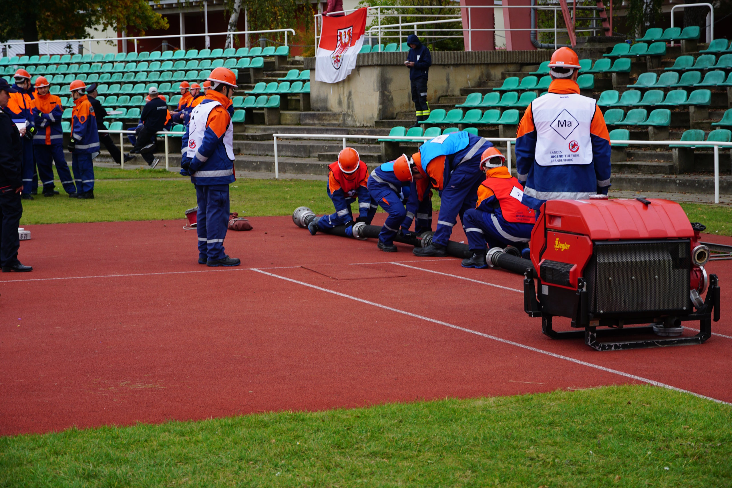 Bevor jedoch der Startschuss durch die Verantwortlichen erfolgte, wurde dieses Verbandsevent durch den Vorstandsvorsitzenden Kamerad Robert Buder eröffnet. Er konnte hierzu den Beigeordneten der Stadt Cottbus Robert Perko, die Bundestagsabgeordnete Maja Wallstein, den Landtagsabgeordneten Lars Katzmarek sowie den Geschäftsführer der Wirtschaftsregion Lausitz GmbH Heiko Jahn begrüßen. Ebenfalls vor Ort waren der Vizepräsident des Stadtfeuerwehrverbandes Cottbus e.V. Kamerad Kay Kruppa, der stellvertretende Stadtjugendfeuerwehrwart Kamerad Alexander Krause, der Leiter des Kreisverbindungskommando Cottbus Martin Heusler und Mathias Voigt als stellvertretender Kreisbrandmeister Spree-Neiße. In den Grußworten würdigten sie vor allem das Engagement der Jugendlichen, welches die Jugendlichen für die künftige Gefahrenabwehr in den örtlichen Feuerwehreinheiten zwingend beibehalten müssen. Zudem wünschten sie sportliche, faire und unfallfreie Wettkämpfe, verbunden mit der erfolgreichen Abnahme der Leistungsspange. Umrahmt wurde die Eröffnung traditionell durch den Spielmannzug Turnow e.V., welcher am 06.06.2026 sein 100-jähriges Jubiläum begeht.