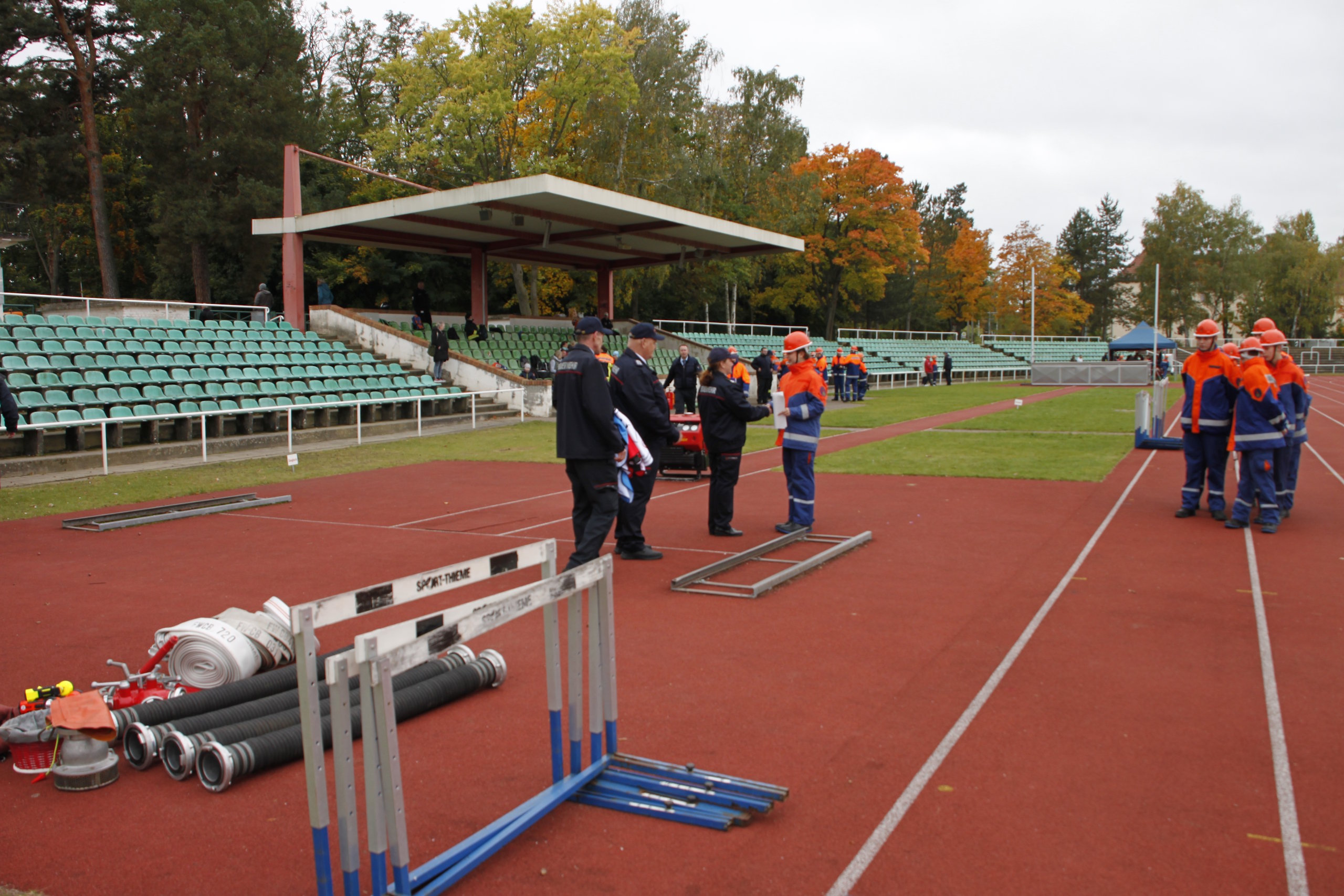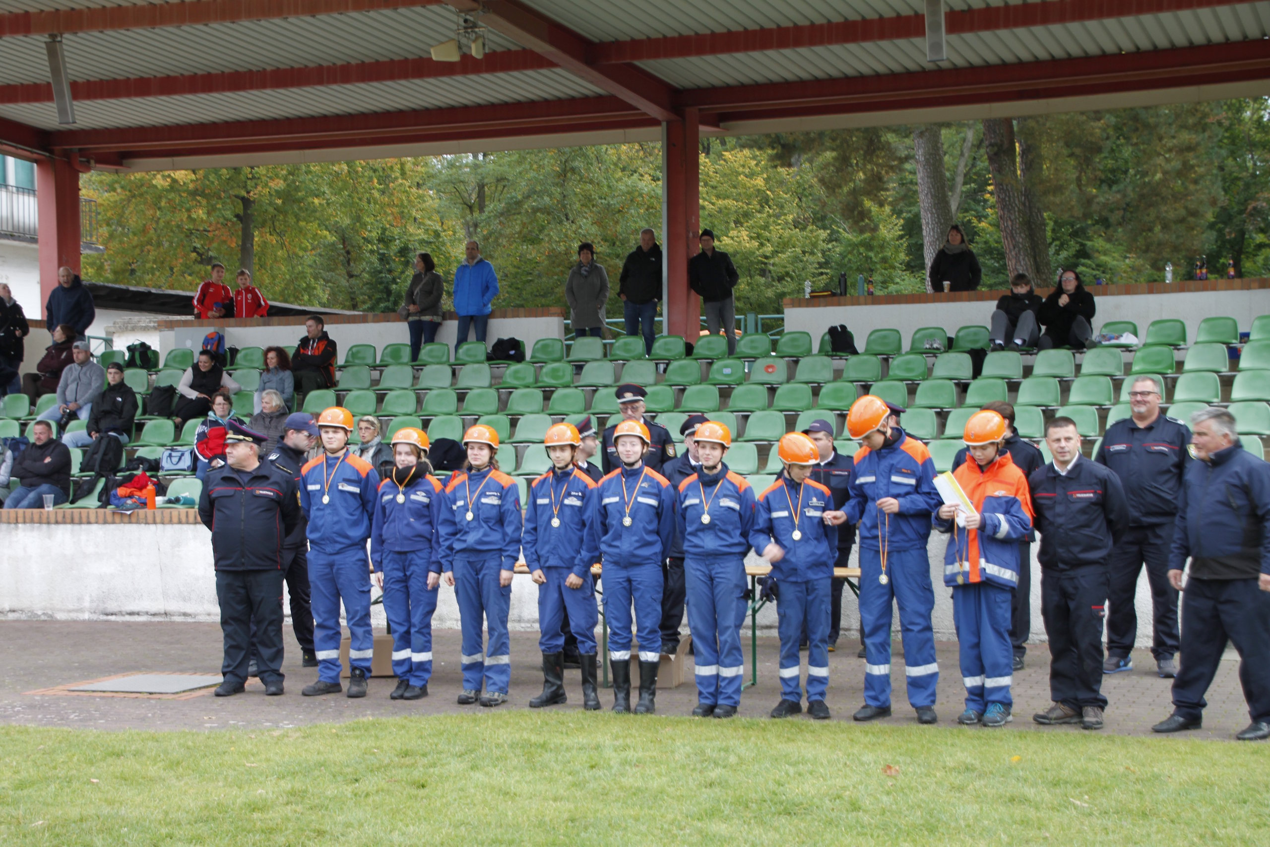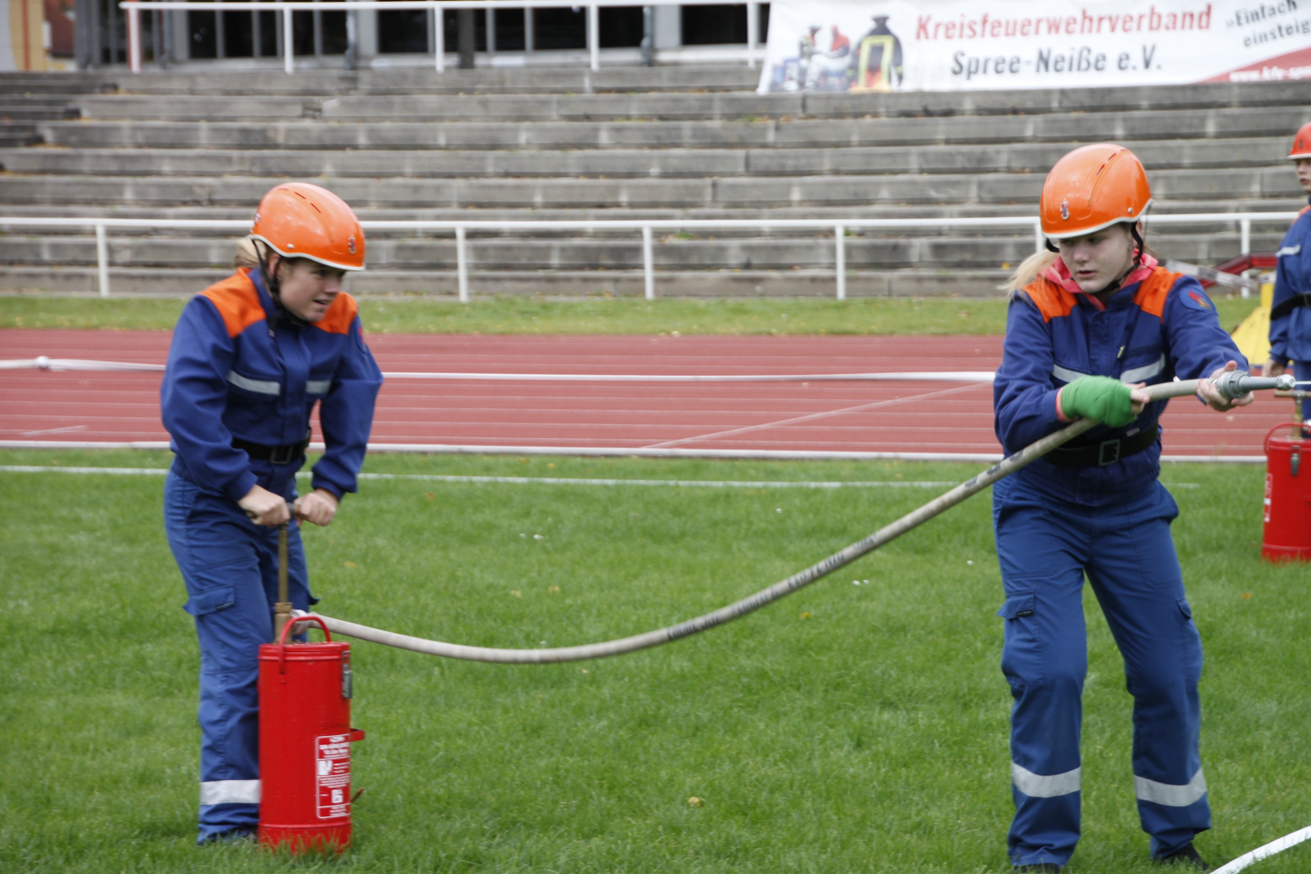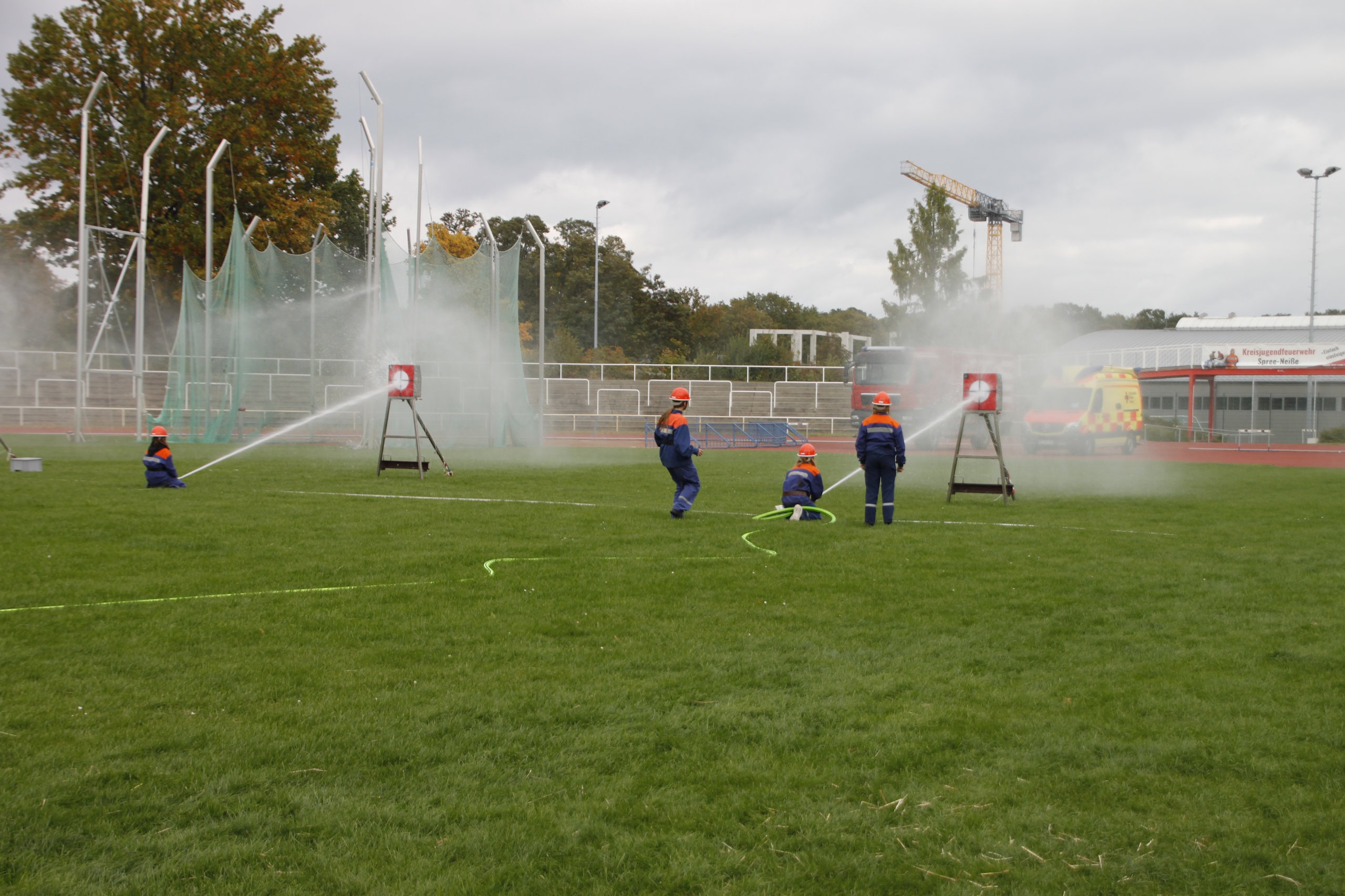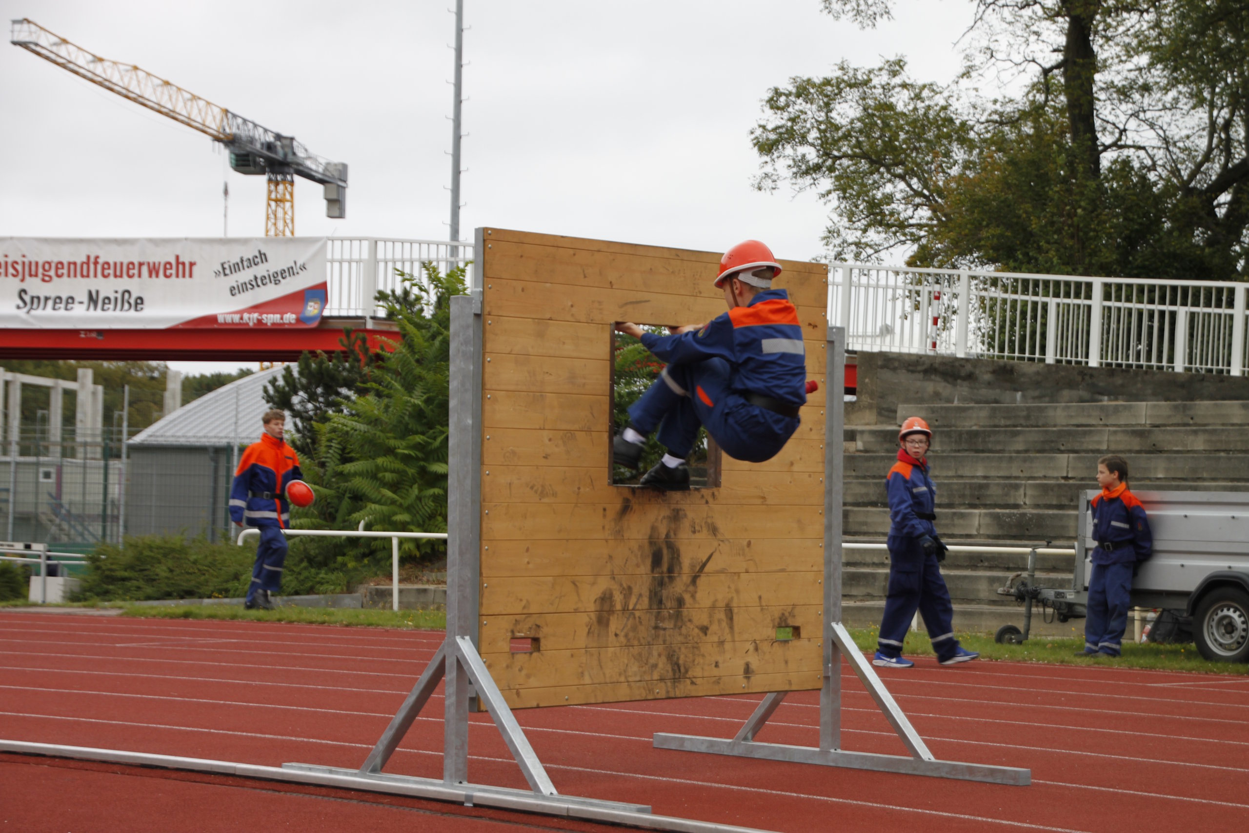 Die Leistungsspange der Deutschen Jugendfeuerwehr gilt als höchste Auszeichnung in der Jugendfeuerwehr, so Kreisjugendfeuerwehrwart Kamerad Stefan Kothe. Er war mit dem Abnahmeberechtigten der Deutschen Jugendfeuerwehr Kamerad Wilfried Budarick für den Ablauf in den fünf Disziplinen – Löschangriff, Schnelligkeitsübung, Kugelstoßen, 1.500-Meter-Staffellauf und Fragenbeantwortung verantwortlich. Alle Teilnehmer aus den Gruppen Spremberg, Döbern-Land sowie Neuhausen/Spree sowie den jeweiligen zwei Staffeln aus Cottbus und Blankenfelde-Mahlow konnten ihr Wissen als auch den sportlichen Stand unter Beweis stellen. Somit wurde den Jugendlichen zum Abschluss die Leistungsspange verliehen.