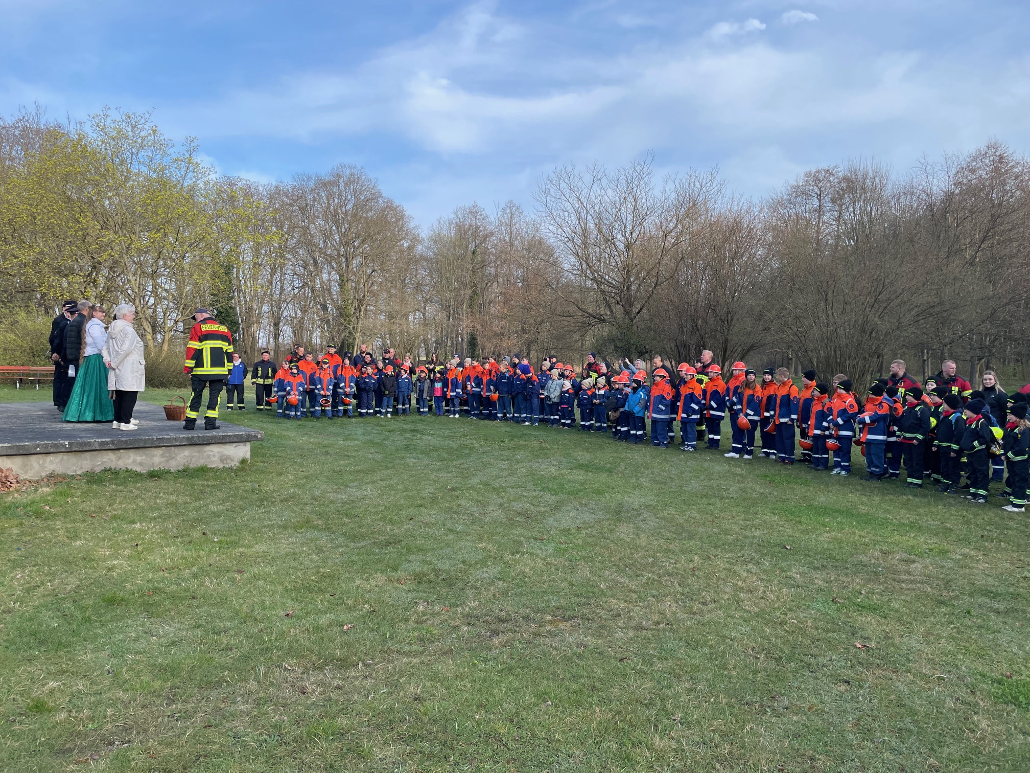 Das schöne Wetter mit Sonnenschein sorgte für eine angenehme Atmosphäre. Besonders hervorzuheben waren die gute Kameradschaft und die vorbildliche Disziplin der Teilnehmenden. Zur Stärkung gab es am Mittag leckere Bratwurst, bevor die Siegerehrung stattfand. Dabei wurden die Kinderflamme 1 und 2 verliehen. Alle Gruppen erhielten zum Abschluss kleine Präsente und Süßigkeiten als Anerkennung für ihre Teilnahme.