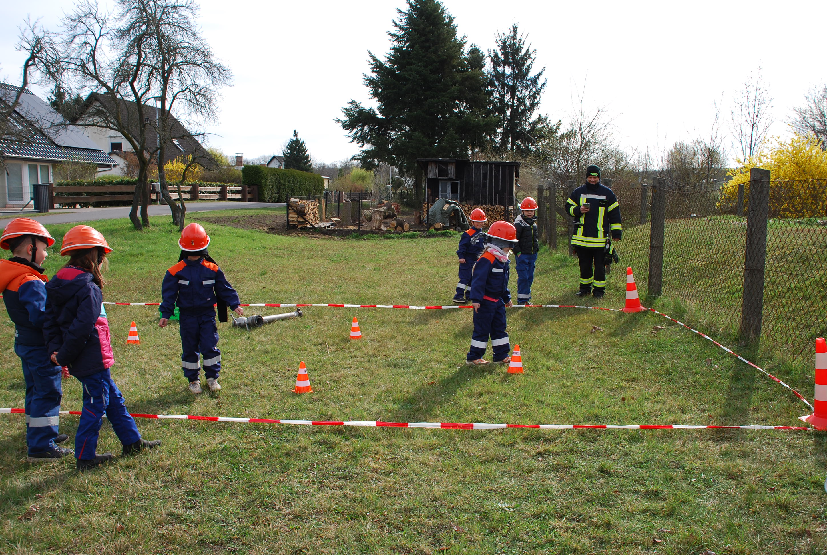 Der Lauf führte die jungen Feuerwehrleute zu acht abwechslungsreichen Stationen, an denen sie ihr Wissen und ihre Geschicklichkeit unter Beweis stellen konnten. Zu den Aufgaben gehörten ein Wissensquiz, eine Hindernisbahn, das Suchen und Benennen von Feuerwehrgegenständen, eine Fahrradwerkstatt bei der sicherheitsrelevante Teile des Fahrrads benannt werden mussten, Wasserförderung aus offenem Gewässer mittels Eimern in einen Feuerwehrschlauch, das Laufen im Schlauch, Feuerwehr-Memory sowie Stiche und Bunde. Entlang der Strecke informierten Tafeln über die Geschichte des ehemaligen Dorfes Göhrigk und die Bergbauvergangenheit der Region.