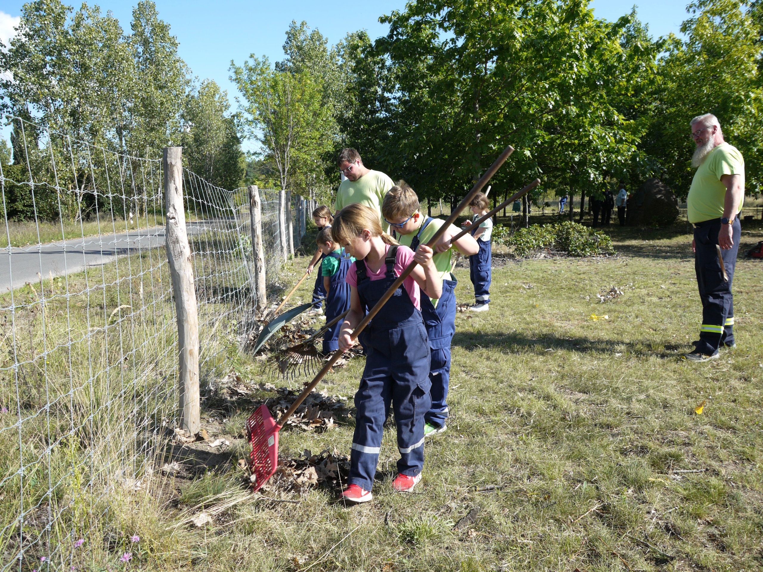 Bei bestem Wetter und durch den fleißigen Einsatz der vielen kleinen und großen Helfer ging die Arbeit schnell von der Hand und die Gedenkstätte sowie die nahe Umgebung konnten von Unkraut, Laub und Ästen gesäubert werden. In diesem Jahr konnte das alles gleich in einen bereitgestellten Container verbracht werden, der sich zusehends füllte.