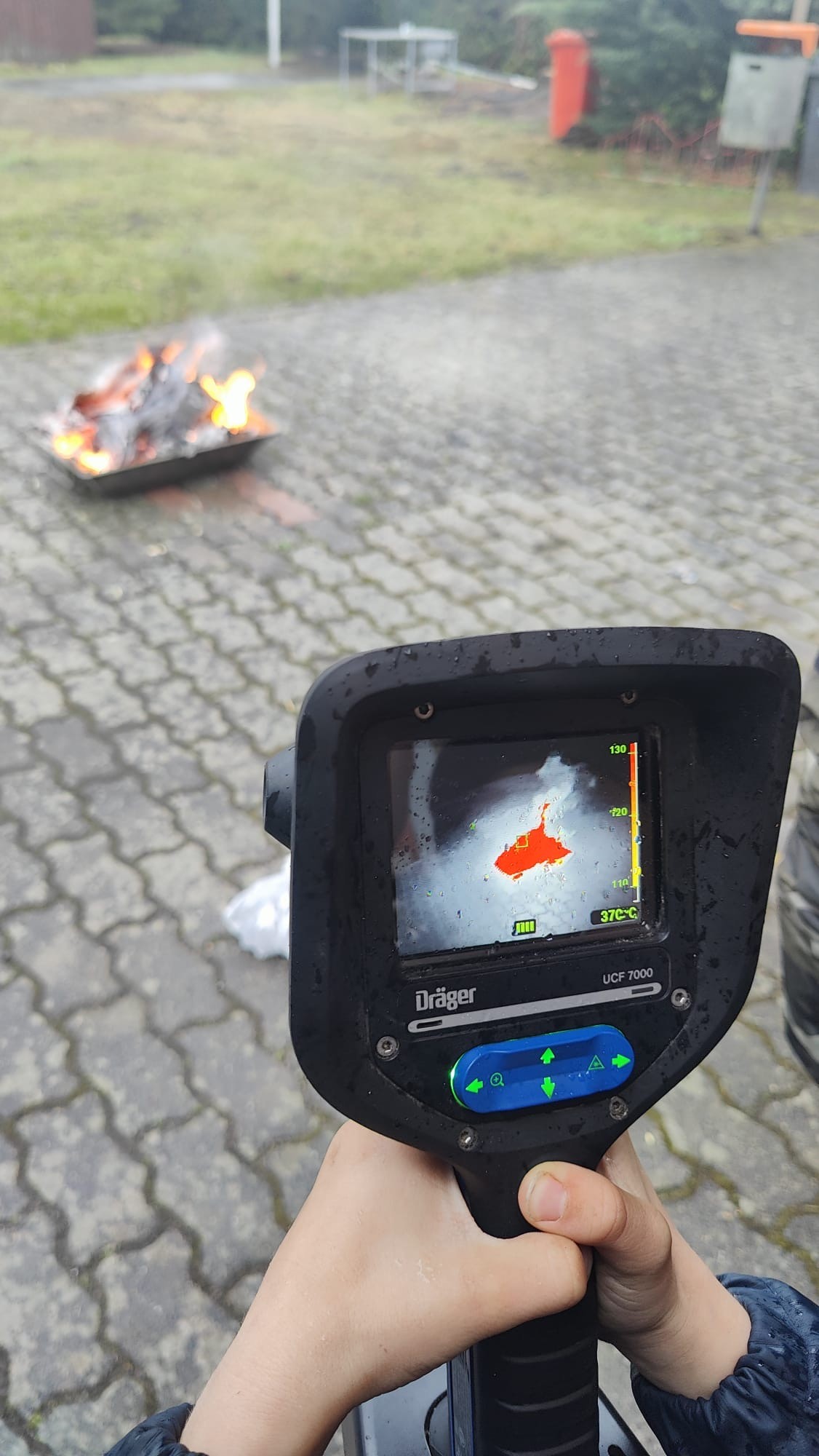 Ein besonderes Highlight war der Einsatz einer Wärmebildkamera. Damit konnten die Kinder sehen, wie heiß das Feuer wirklich ist und wo sich die größten Hitzequellen befinden – ein spannender Einblick in die Technik der Feuerwehr.
