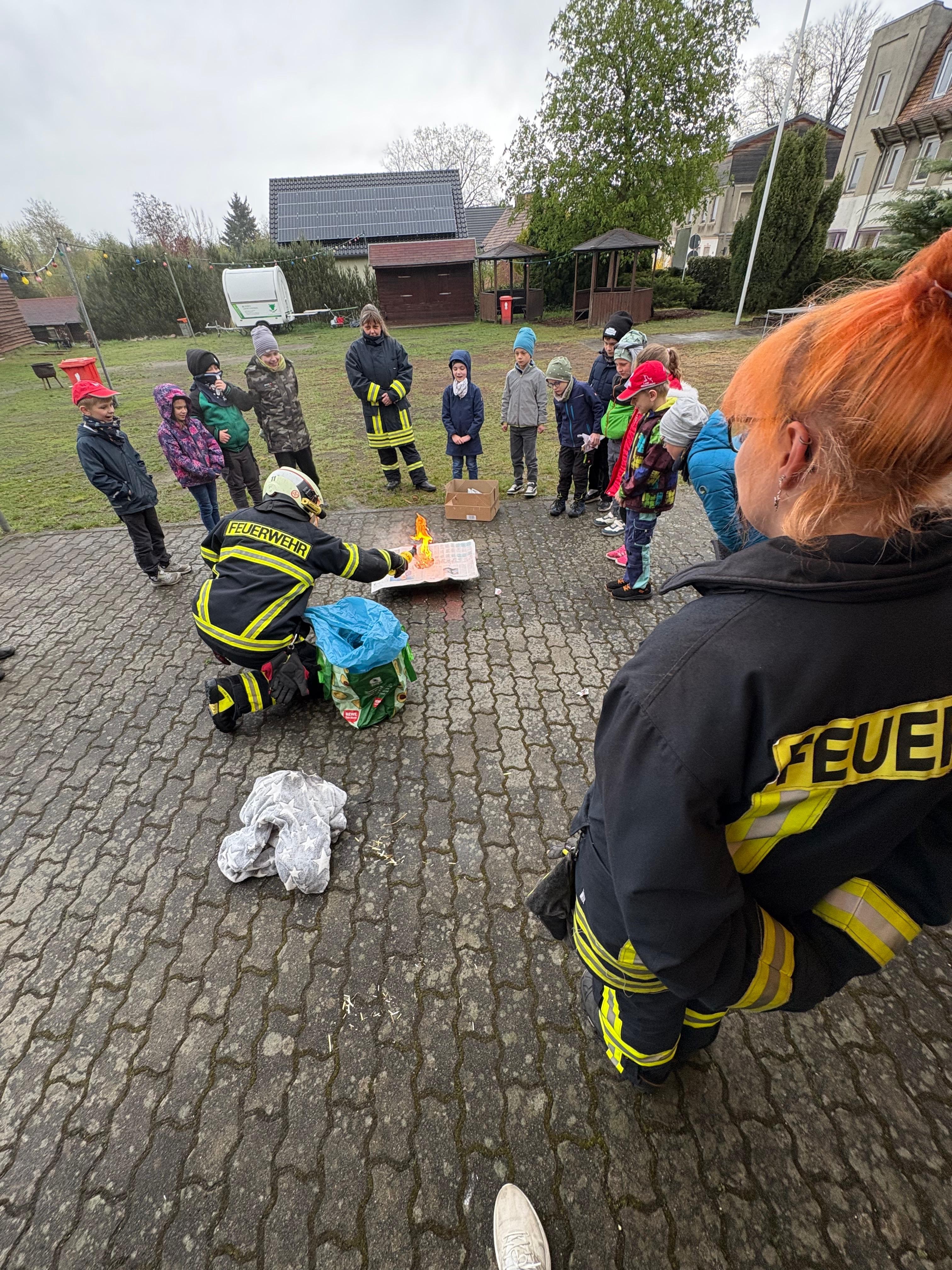 Natürlich ging es auch darum, wie man Feuer richtig löscht. Die Kinder lernten, welche Löschmittel es gibt und wann man welches am besten einsetzt.