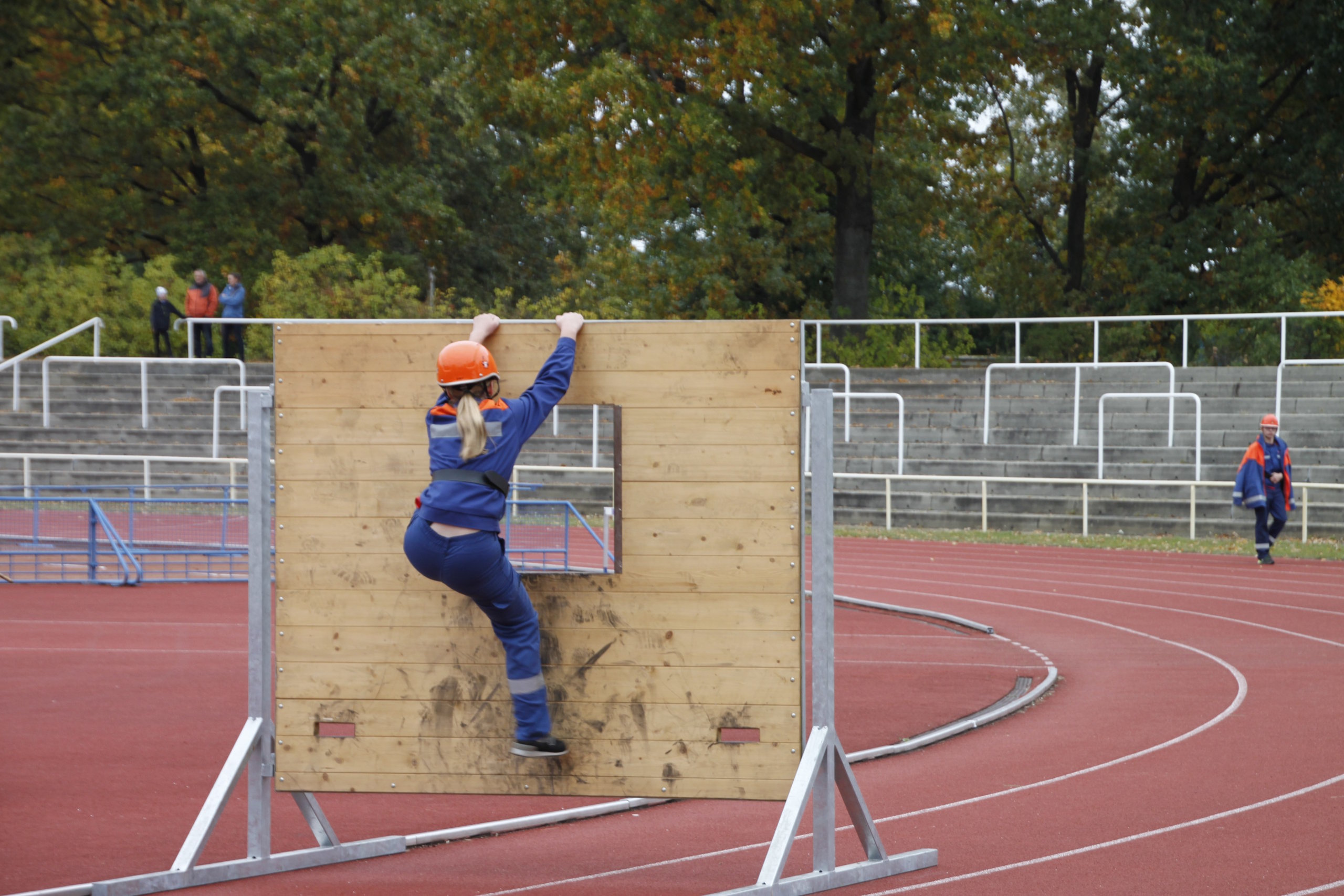 Die Leistungsspange der Deutschen Jugendfeuerwehr gilt als höchste Auszeichnung in der Jugendfeuerwehr, so Kreisjugendfeuerwehrwart Kamerad Stefan Kothe. Er war mit dem Abnahmeberechtigten der Deutschen Jugendfeuerwehr Kamerad Wilfried Budarick für den Ablauf in den fünf Disziplinen – Löschangriff, Schnelligkeitsübung, Kugelstoßen, 1.500-Meter-Staffellauf und Fragenbeantwortung verantwortlich. Alle Teilnehmer aus den Gruppen Spremberg, Döbern-Land sowie Neuhausen/Spree sowie den jeweiligen zwei Staffeln aus Cottbus und Blankenfelde-Mahlow konnten ihr Wissen als auch den sportlichen Stand unter Beweis stellen. Somit wurde den Jugendlichen zum Abschluss die Leistungsspange verliehen.
